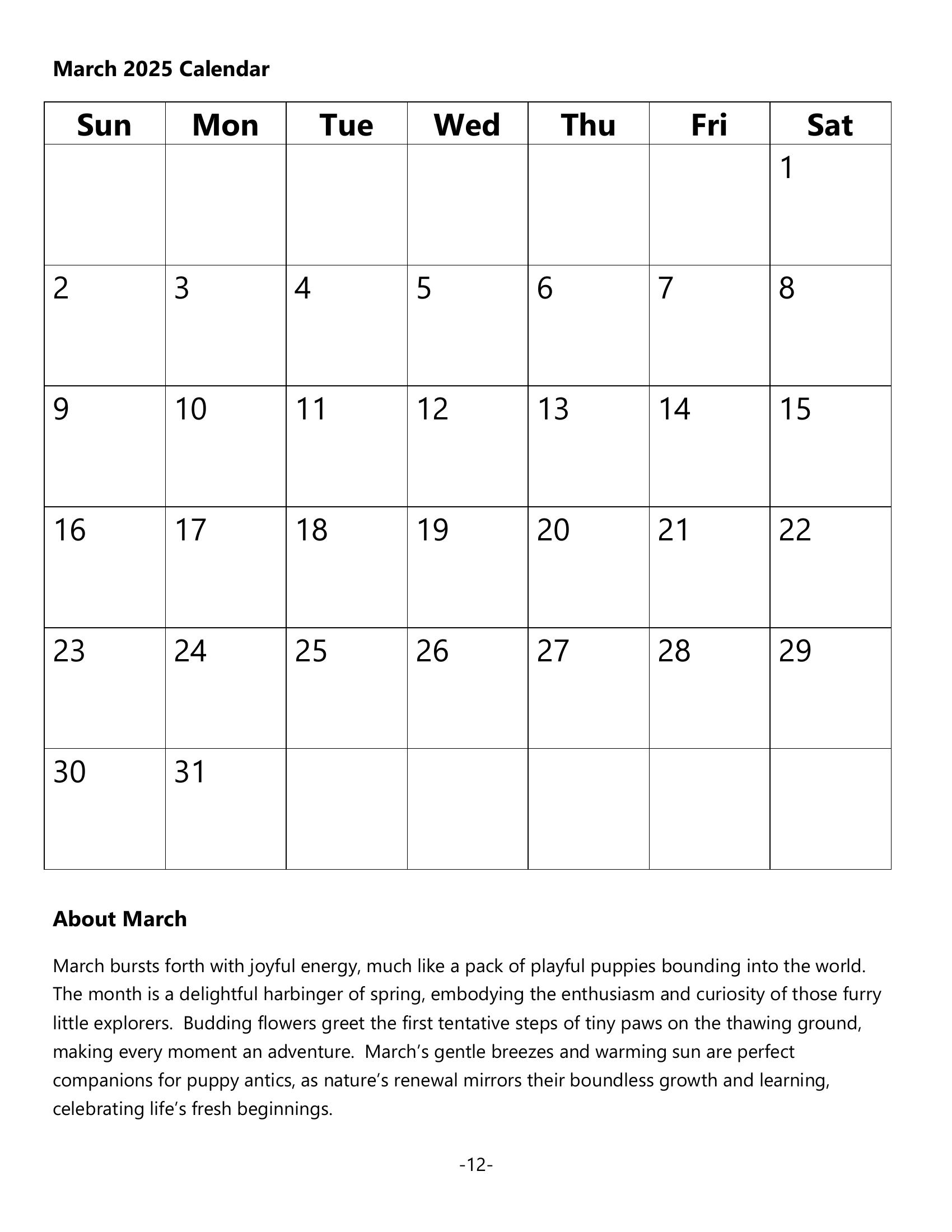June and July dance with melodic barks and fuzzy snuggles, a harmonious puppy love symphony. August through October capture moments of endearing curiosity and delightful chaos unique to energetic pups. November and December embrace the year with cuddly warmth, inviting cherished moments with these furry bundles of joy.