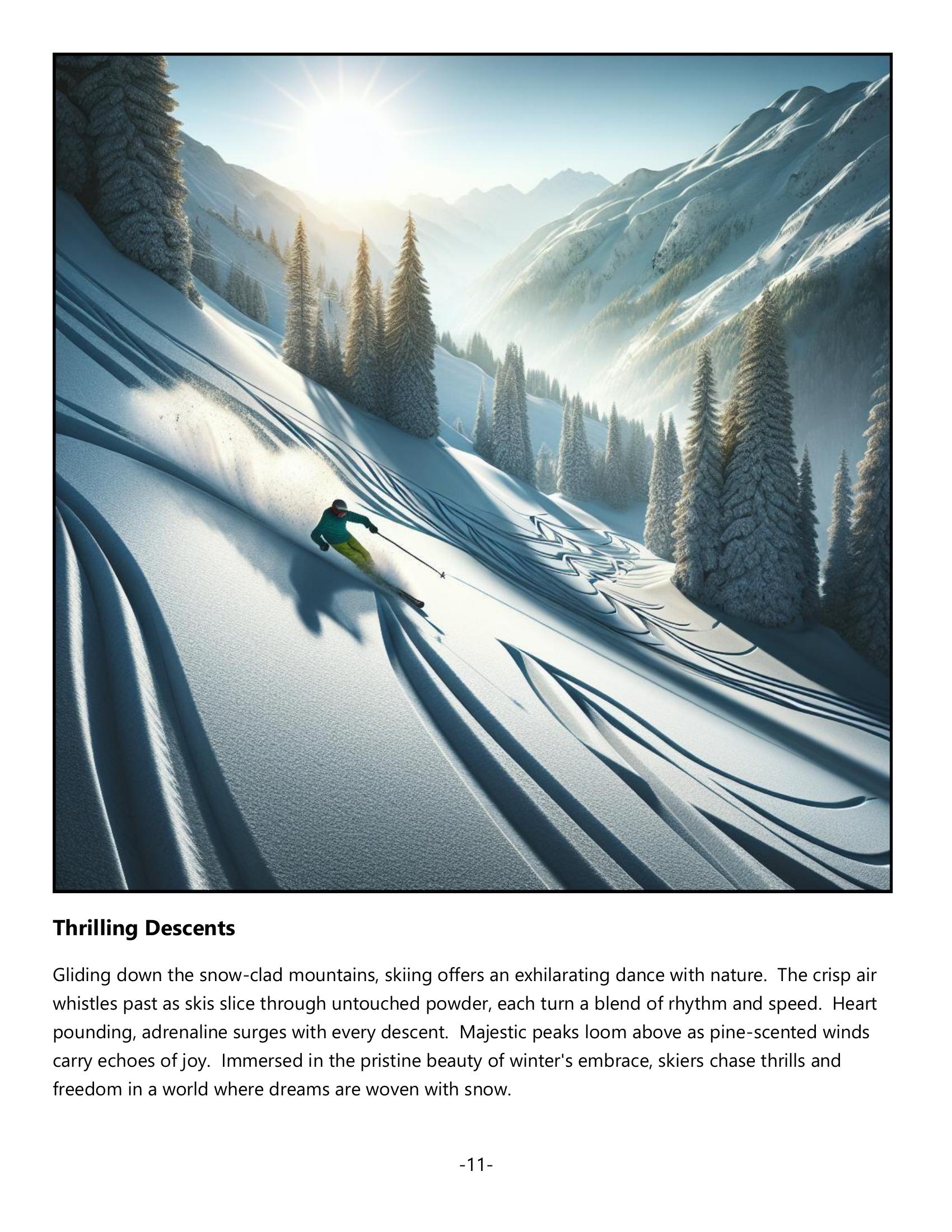 Navigate the slopes with Swift Turns, a symphony of grace that dances across nature’s white canvas. Cozy Lodges await your return, offering warmth and camaraderie, where stories of the day’s exploits unfold by the fire. Ski Lifts transport you back to summits of opportunity, ready to conquer yet again.