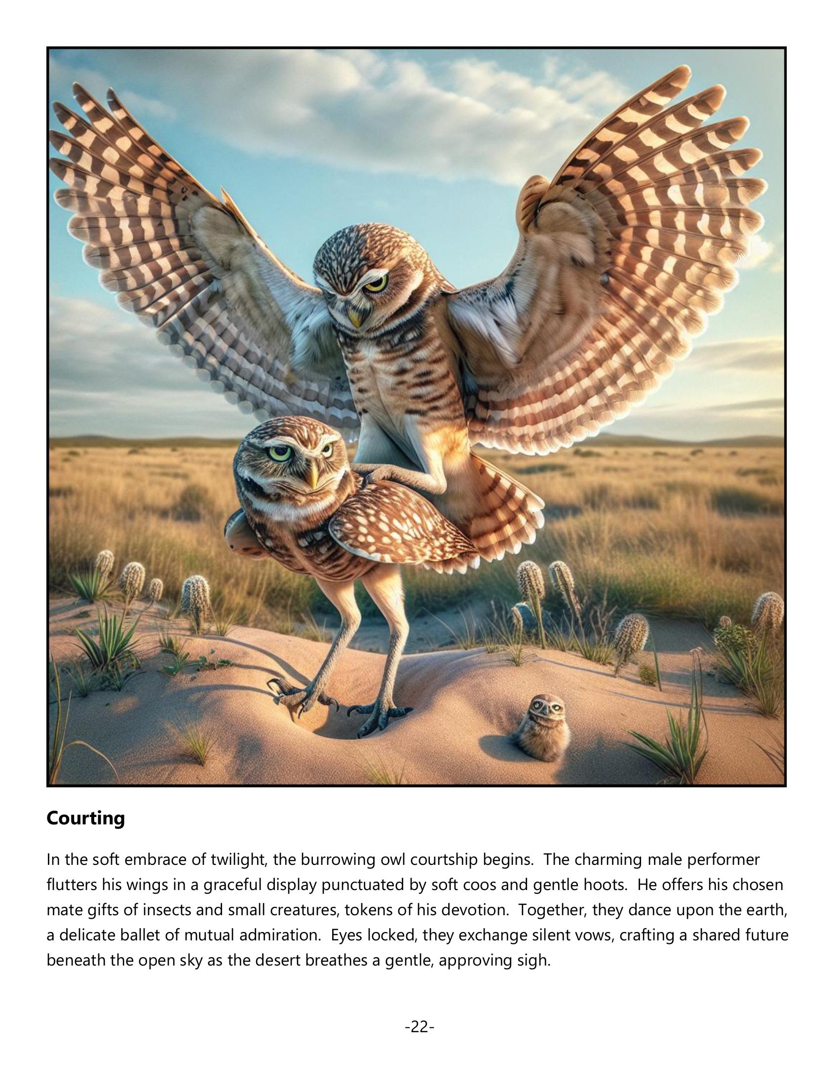 Step into the magical realm of the Burrowing Owl with this captivating book that unravels the intriguing world of these prairie-dwelling creatures. Through rich illustrations and vibrant storytelling, discover their playful courtship, clever snake-like mimicry, and enduring parental care. Explore their challenges, such as habitat loss and climate change, while celebrating their beauty and resilience. Ideal for birdwatchers, educators, and nature lovers, this book inspires action and inspires readers to appreciate and protect our natural world.