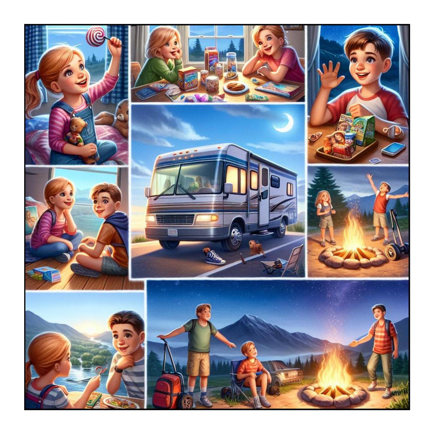 Embark on an enchanting adventure with Rosie and Victor in “The Pleasures of RV Travel.” Join these two inquisitive siblings as they set off with their family on a thrilling RV journey, bidding farewell to their familiar neighborhood and embracing nature’s wonders. With each new destination, the children revel in the excitement of the open road, diving into hiking escapades, sharing stories around the campfire, and forging friendships at bustling RV parks—intrigue blossoms when a mysterious treasure map is found, sparking unexpected adventures.